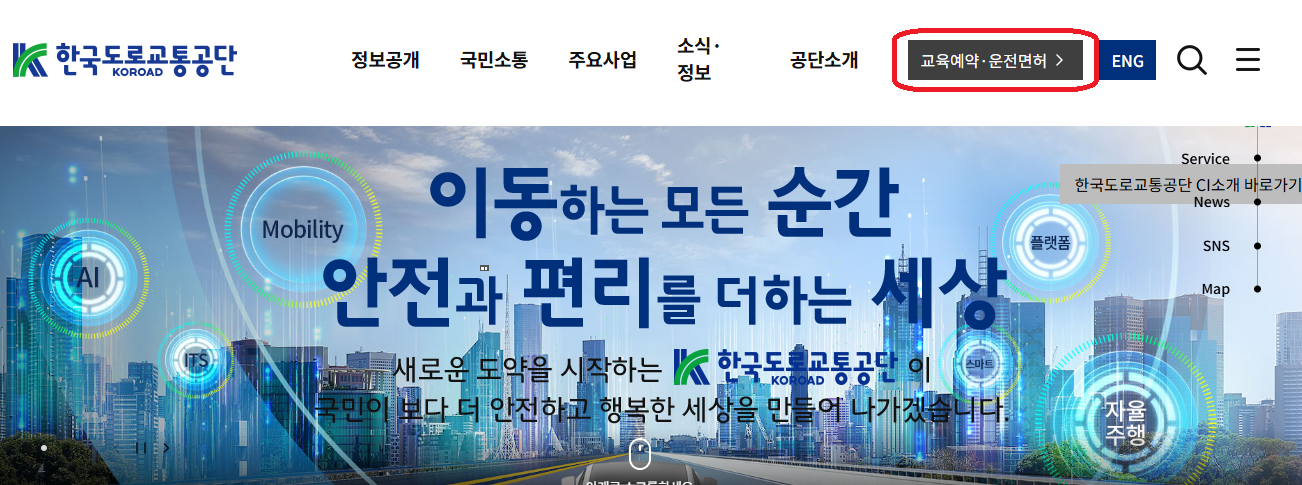 - 도로교통공단 공식 홈페이지 접속