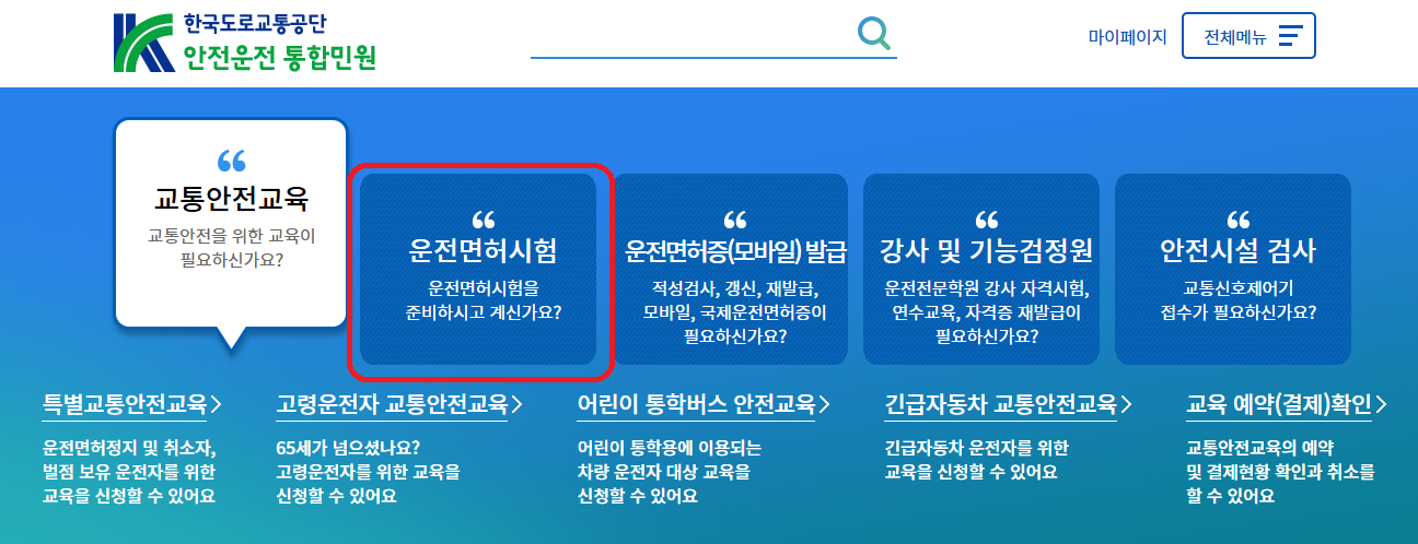 - 운전면허시험 메뉴 선택