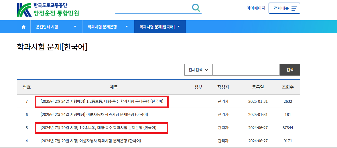 - 1종/2종/보통, 대형,원동기 면허별 문제 다운로드