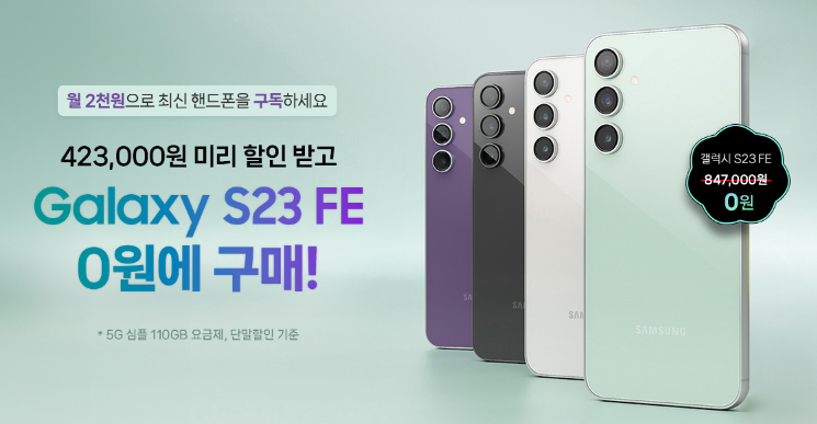 갤럭시 S23 FE출시 금액 84만 7천 원을 공시지원금과 폰 반납 조건으로 핸드폰 금액을 0원으로 사용할 수 있습니다.